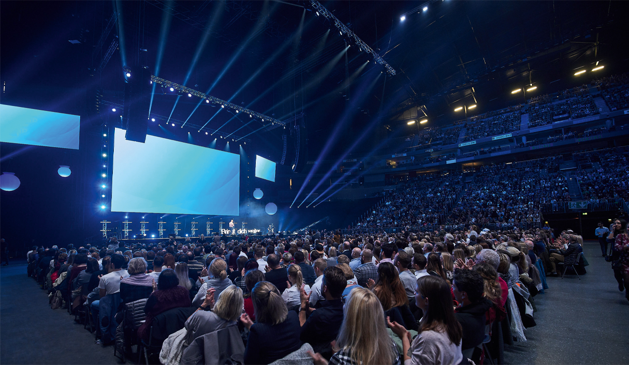 Ob Konferenz, Hauptversammlung oder Firmenjubiläum – LED-Wände verleihen Ihrem Event eine eindrucksvolle Bühne. Inhalte wie Präsentationen, Live-Kameras, Grafiken oder Einspieler werden gestochen scharf dargestellt und sind selbst aus großer Entfernung perfekt sichtbar. So erreichen Sie Ihr Publikum klar und wirkungsvoll. Dank flexibler Größen und kreativer Aufbaumöglichkeiten integrieren wir die LED-Technik nahtlos in Ihr Corporate Design und unterstützen Sie dabei, Ihre Marke professionell und modern zu präsentieren.